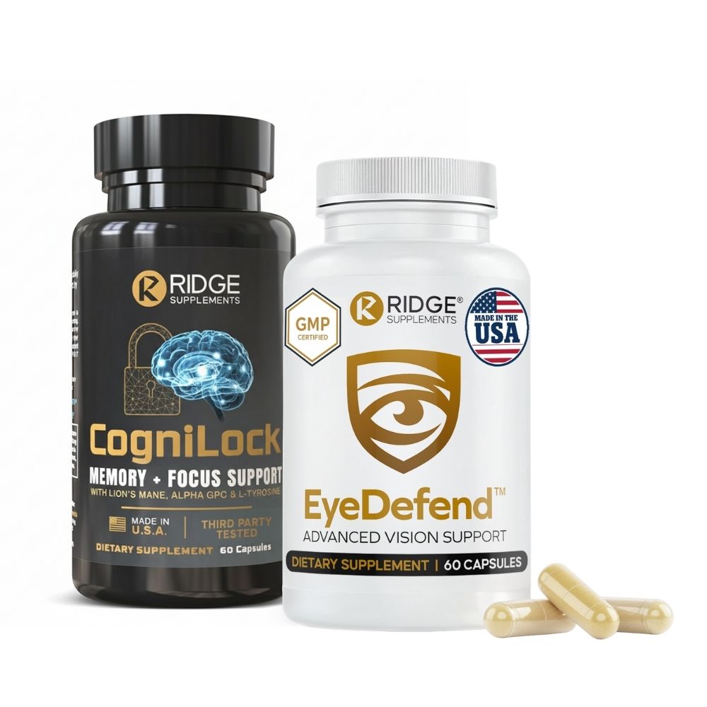 CogniLock supports mental clarity, focus, and cognitive performance during long workdays and demanding tasks—without caffeine, jitters, or crashes. EyeDefend complements that support by helping maintain eye comfort and visual health during extended screen time.