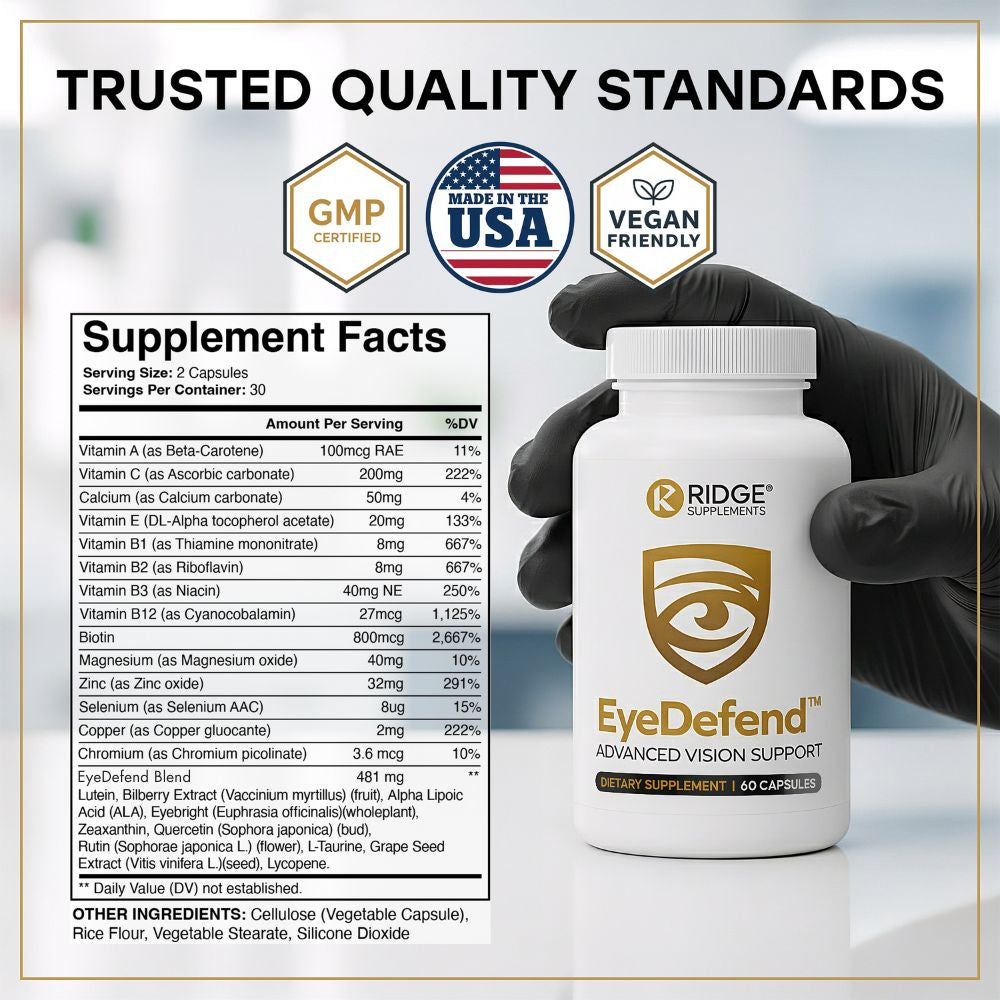 EyeDefend™ AdvancedVision Support is a premium eye health formula designed for both short-term comfort and long-term protection.
