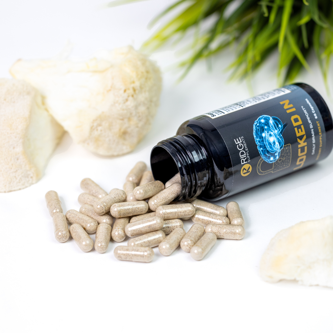 - Organic Lion’s Mane Mushroom (Hericium erinaceus) – Stimulates Nerve Growth Factor (NGF), helping regenerate brain cells and support focus, clarity, and long-term brain health.